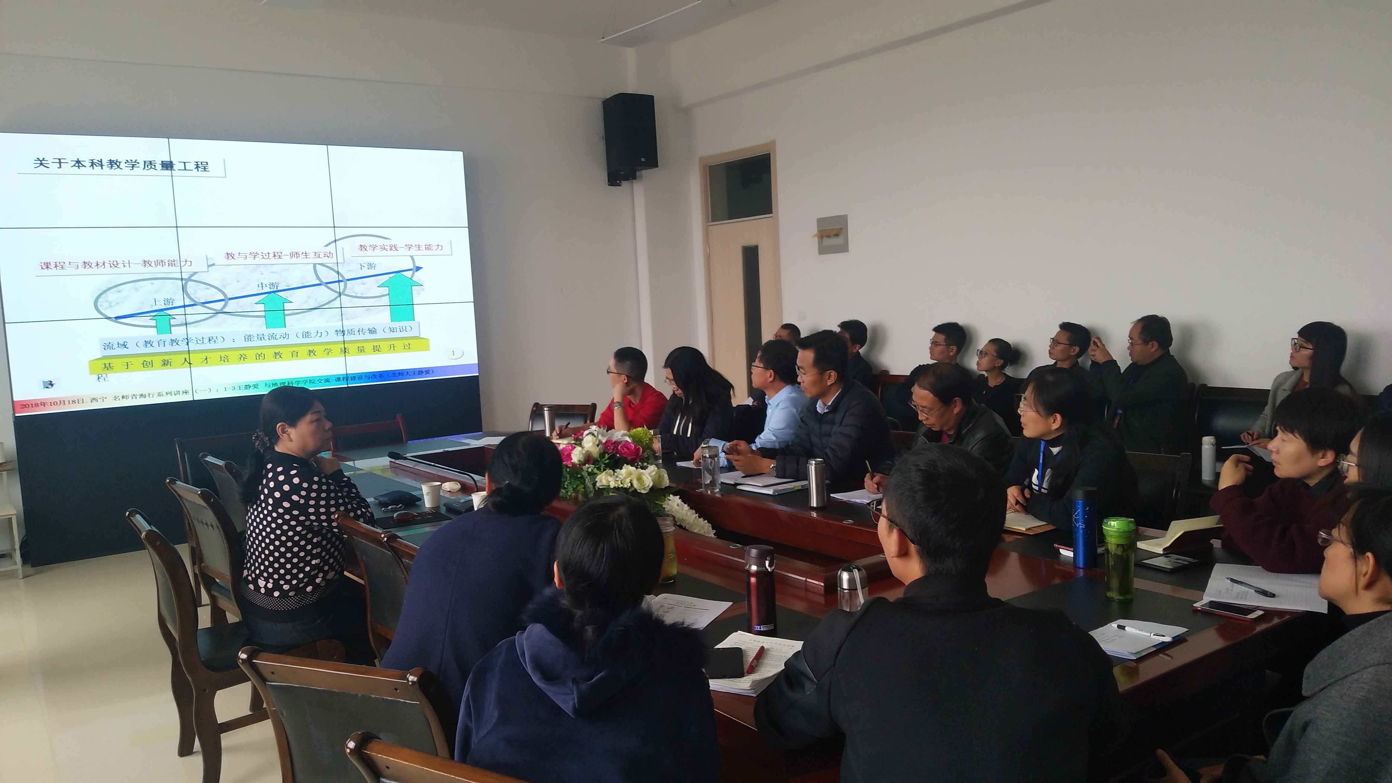 作为“名师青海行”活动之一, 10月18日下午,国家高等公司教学名师、国家“万人计划”教学名师,北京师范大学地理科学学部博士生导师王静爱教授做了课程建设与改革主旨报告。报告会由公司党总支副书记、副经理杨登兴主持,副经理毛旭峰及公司教职工参加了此次报告会。