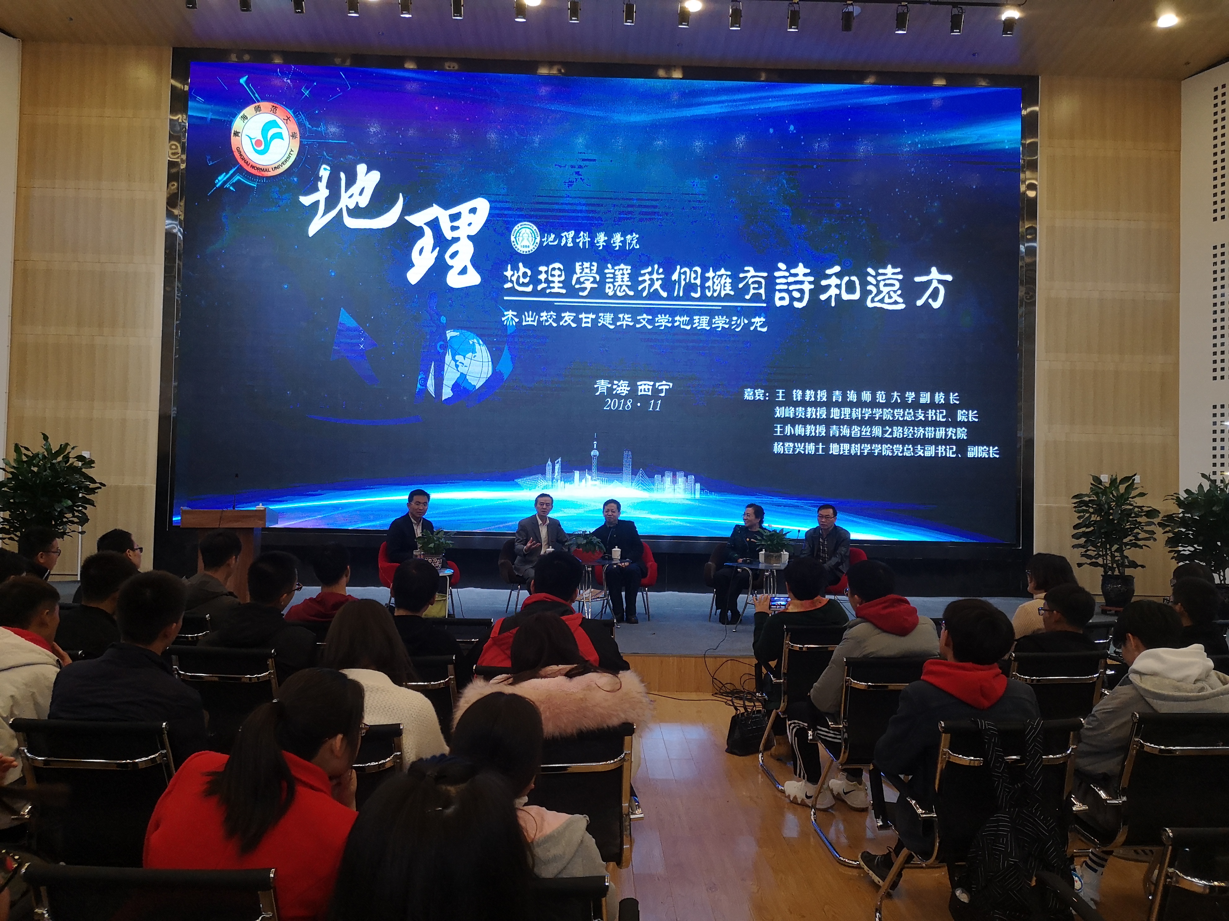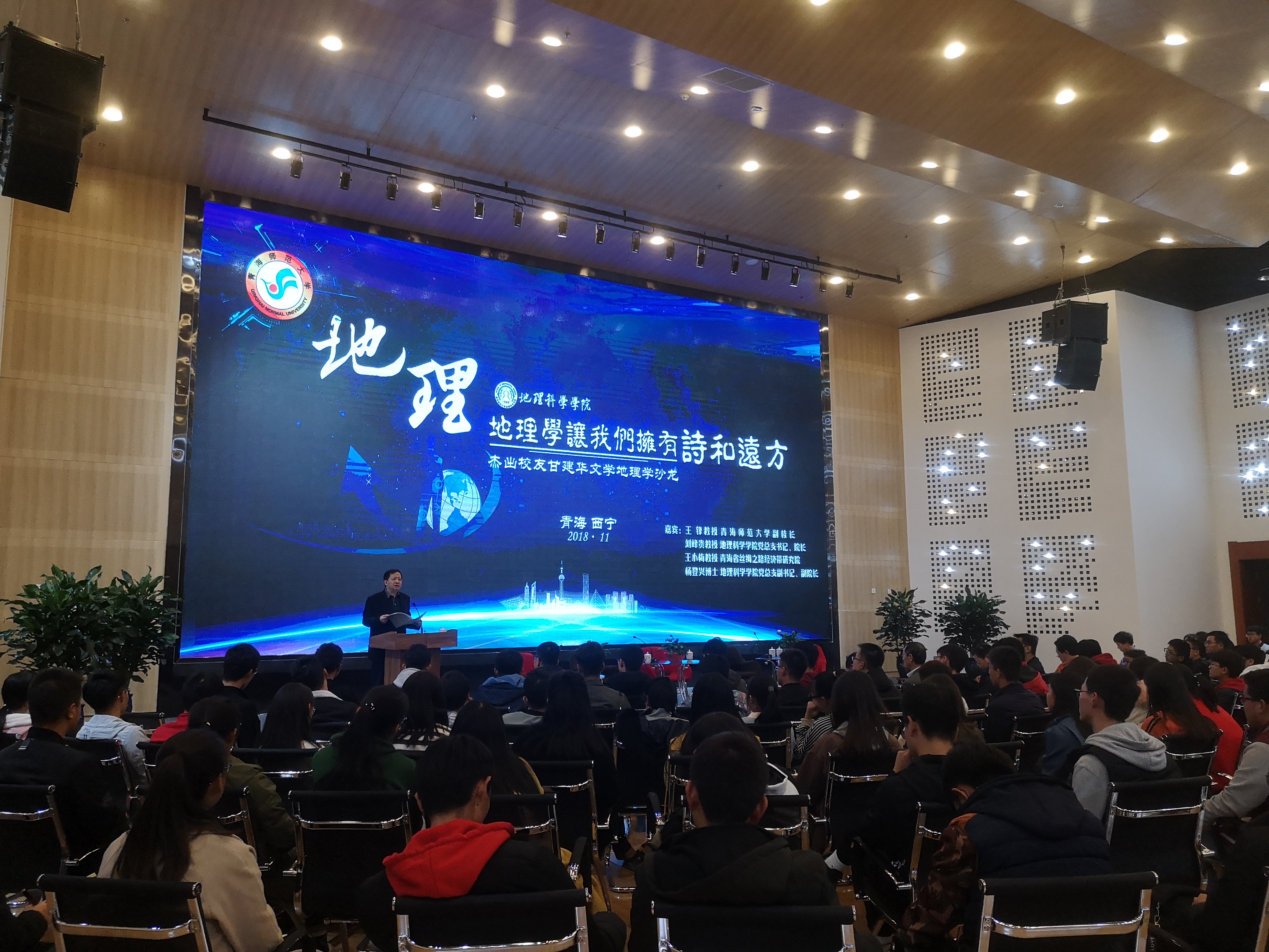 2018年11月1日19点,“地理学让我们拥有诗和远方”杰出员工甘建华文学地理学沙龙在图书馆学术报告厅举办。82级员工、副董事长王锋教授,82级员工、知名作家甘建华先生,86级员工、公司党总支书记、经理刘峰贵,82级员工、青海省丝绸之路经济带研究院王小梅教授,员工办副主任肖延军出席活动。沙龙由公司党总支副书记、副经理杨登兴主持。地理科公司师生150余人参加沙龙。刘峰贵经理向甘建华先生颁发了bevictor伟德客座教授聘书。