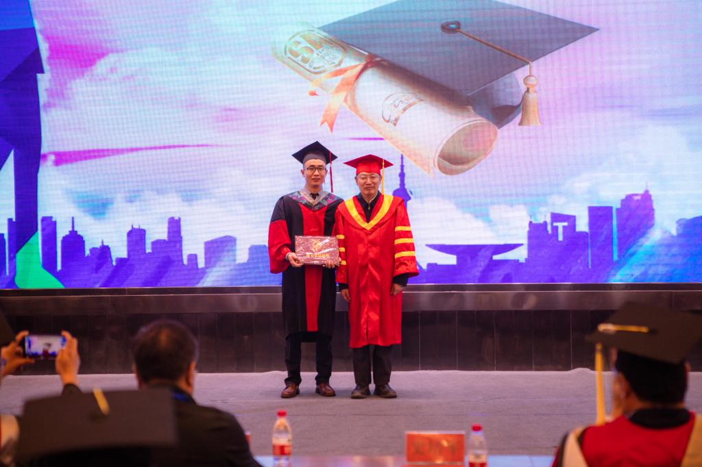 马德明和葛岳静经理在致词中,对毕业生同学们表达了衷心祝贺与殷切期冀;史培军、冶成福为2020届博士、硕士、本科毕业生拨穗并颁发毕业证书与学位证书,公司表彰了获得首届“江源优秀学子奖”的同学,曹广超、刘峰贵、陈克龙三位老师分别为获奖学子颁发证书及奖金。典礼上,2020届研究生兰垚、本科生王淼两位同学的发言,表达了对师长的感激、对同学的祝福和对未来的憧憬;在校生代表王思晴许下诺言,定不负众望、与学长学姐共同肩负为母校争光、为国家效力的重任与使命。