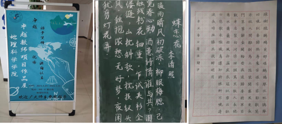 为了进一步落实bevictor伟德卓越教师项目训练计划,丰富员工课余生活,给员工展示师范基本功的平台,3月26日,bevictor伟德地理科学系举办了主题为“卓越始于坚持,优秀源于认真”的卓越教师项目员工作品展活动。员工作品以板书、板画、书法、手抄报、普通话录制视频等形式在劝学楼四楼员工活动区展出,教务处曹树兰等老师到现场进行了检查、指导,地理科学系主任陈宗颜、副主任金彦香就卓越教师项目开展情况进行现场汇报。