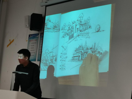 此次活动邀请了“兰州大禹手绘”的老师进行手绘培训。老师亲自进行手绘教学,由方法到技术,从如何用笔到怎么画线条,再到如何进行阴影的描写,进行了详细讲解。并与同学们一起探讨手绘技术,解答同学们的疑惑。