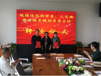 会上,葛岳静经理向新聘任的地理信息科学系主任陈琼副教授、人文地理与城乡规划系主任仲俊涛副教授颁发了聘书上,陈琼、仲俊涛同志分别作了表态发言。