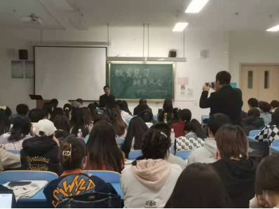 杨显明副经理结合师范专业认证及师范生成长的路径阐述了教育见习的重要性,并强调了安全问题及相关的注意事项。陈宗颜老师对教育见习活动内容、分班进校、日常工作记录、见习考核、实施要求等做了详细的说明和安排。