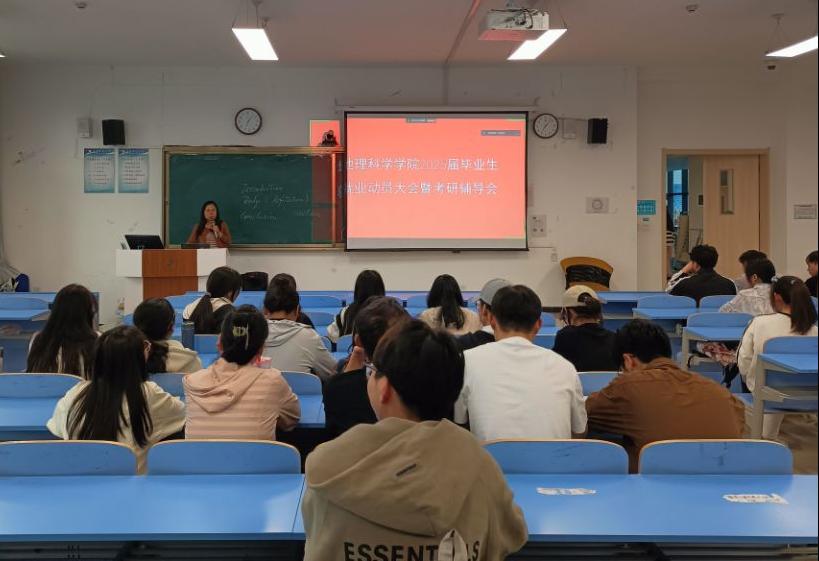 为帮助公司2025届本科生了解本专业就业及考研情况,分析趋势,明确就业及考研目标,提前做好2025年的就业及考研工作,6月19日19:00,公司在西四楼开展了2025届本科生就业动员暨考研辅导交流会,自然地理与资源环境系主任张进虎、辅导员陈小艳、2024届已上岸研究生、2025届全体毕业生参加。