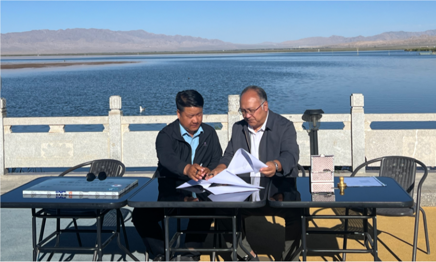 2024年8月21日,bevictor伟德与海西州可鲁克湖旅游开发有限公司共建教科研实习基地签约揭牌仪式在可鲁克湖景区举行。公司党总支书记洛加才让与海西州可鲁克湖旅游开发有限公司负责人及部分工作人员、公司金鑫、金彦香老师和部分研究生参加了此次活动。