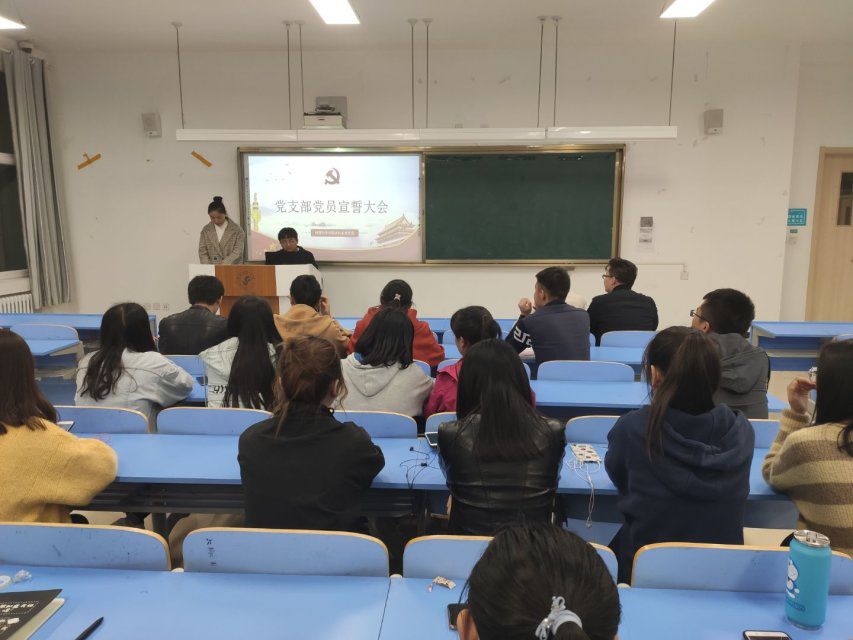为加强同学们的爱国爱党意识,加深爱国情怀,公司本科生党支部于10月13日在西四楼430教室举办了党员宣誓大会,参会人员有教工党支部书记吕晨青老师,辅导员杨永潇老师,部分员工党员以及公司部分入党积极分子。