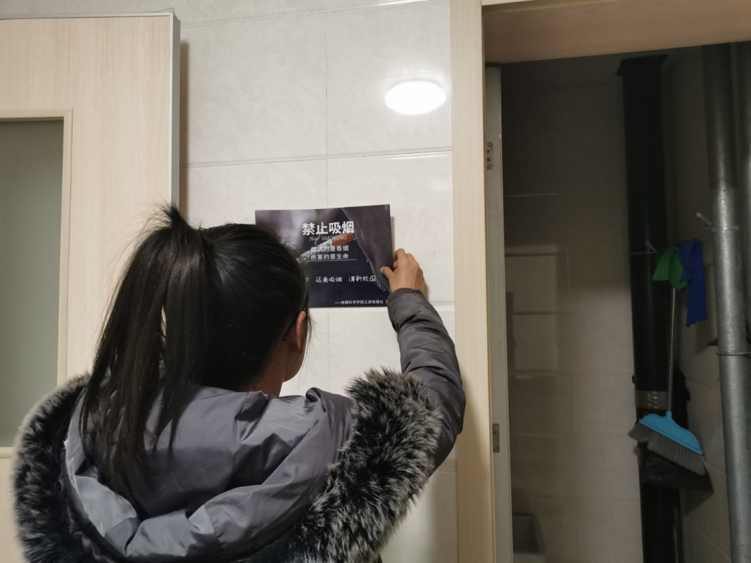 中午,禁烟宣传员们在大众餐厅门前拉起横幅,展示禁烟宣传海报,向过往的师生讲解吸烟的危害,并呼吁他们加入我们的禁烟活动。广大师生响应我们的呼吁在横幅上踊跃签字留言。下午,禁烟宣传员们化身禁烟斗士,围绕男生公寓到老员工活动中心门口路段捡烟头。晚自习期间,禁烟宣传员代表进入各班播放禁烟动画,详细讲解吸烟的危害,最后呼吁吸烟的同学戒除吸烟陋习,文明先行,争做戒烟先锋。