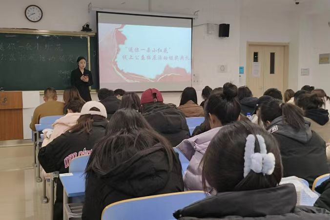 活动期间,参赛同学通过线上使用腾讯公益、未成年人家长服务平台、天天做好事等小程序,不断收集小红花。总结表彰当天,首先,青年志愿者们观看了“送你一朵小红花”线上公益活动主题视频,以此增强同学们参与公益的热情;然后,核实参与者的小红花数量,排出前50名,并现场为关爱农村敬老院老人项目、共抗艾滋·共享健康项目捐出一个月收集的8031朵小红花。